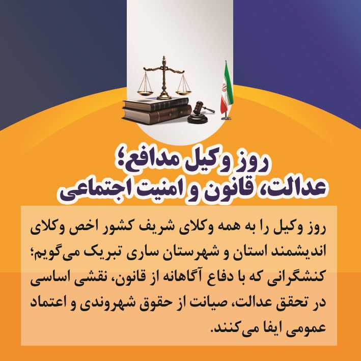روز وکیل مدافع، یادآور جایگاه بیبدیل قانون در حفظ نظم و عدالت اجتماعی است. وکالت، صرفاً یک حرفه حقوقی نیست، بلکه نهادی اجتماعی برای دفاع از حقوق شهروندان و تضمین دادرسی عادلانه محسوب میشود. استقلال نهاد وکالت، یکی از شاخصهای اصلی سلامت نظام حقوقی در هر جامعهای است.